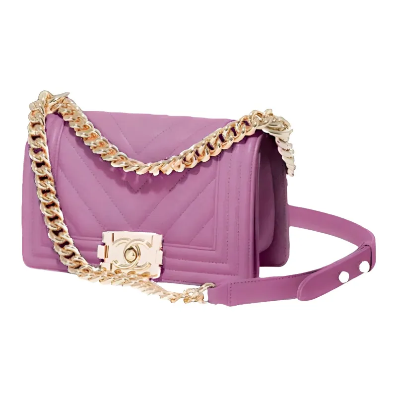 CHANEL LEBOY С рельефом Тисненый Телячья кожа Сумка через плечо Маленькая Женская Сумка Фиолетовая