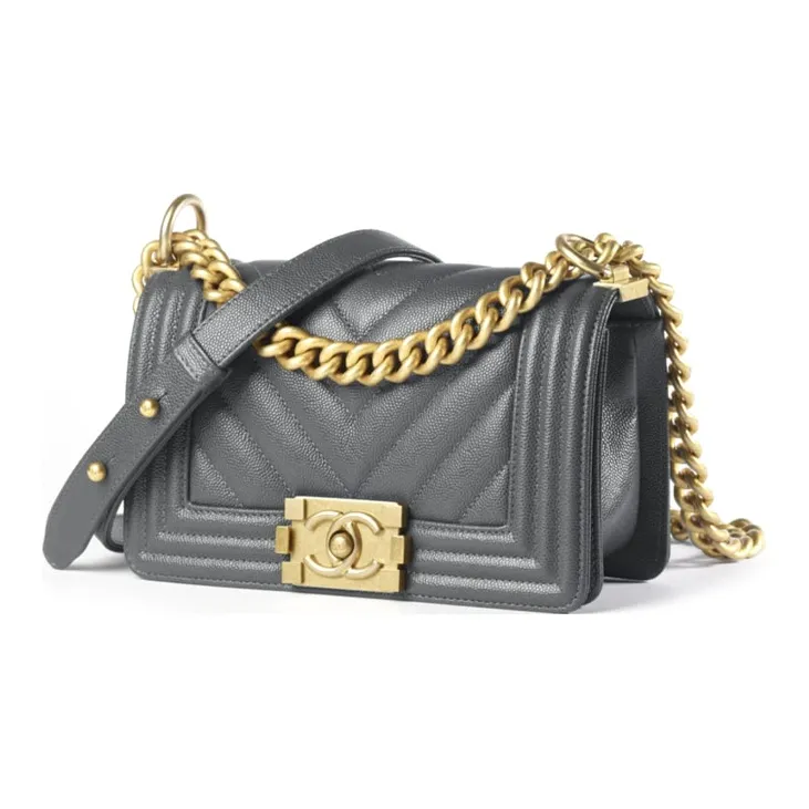 CHANEL LEBOY С рельефом Тисненый Телячья кожа Сумка Сумка через плечо Сумка через плечо Маленькая Женская Темно-серая