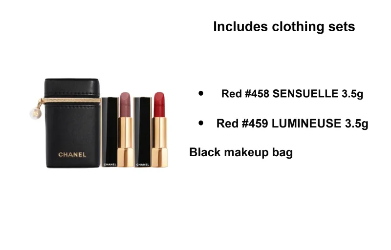 Оттенок:Помада #458 SENSUELLE + Помада #459 LUMINEUSE + Черная косметичка