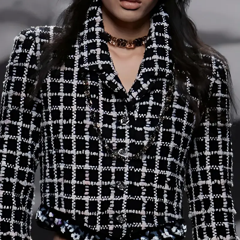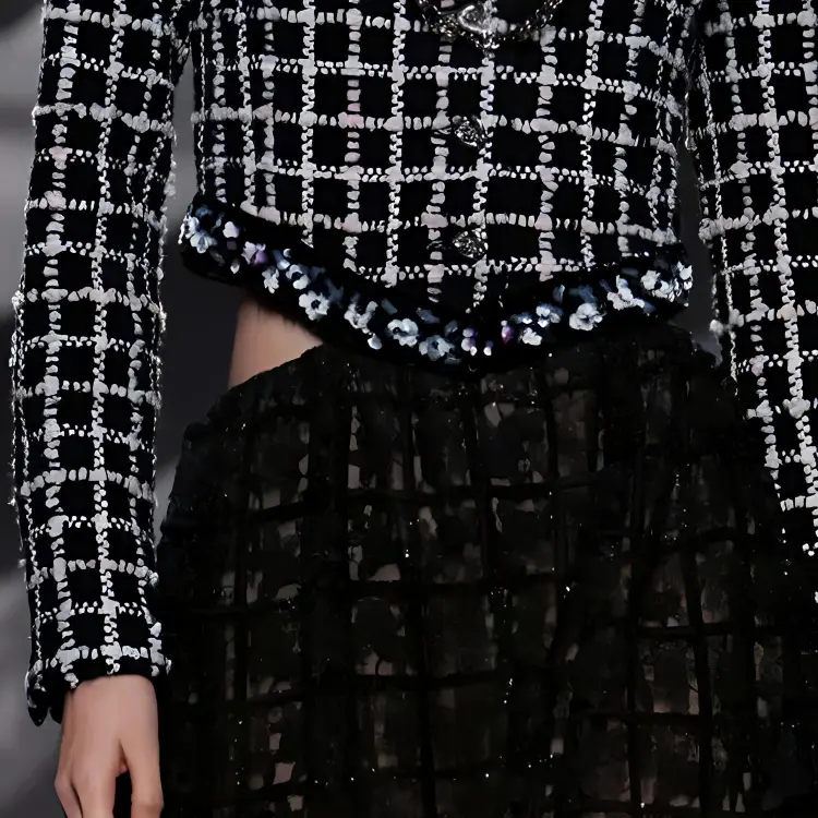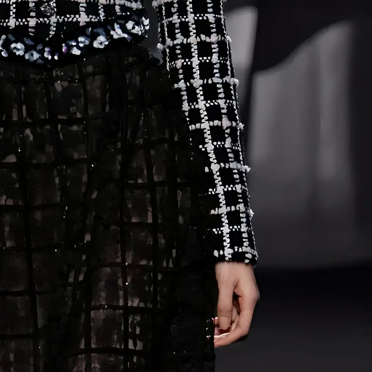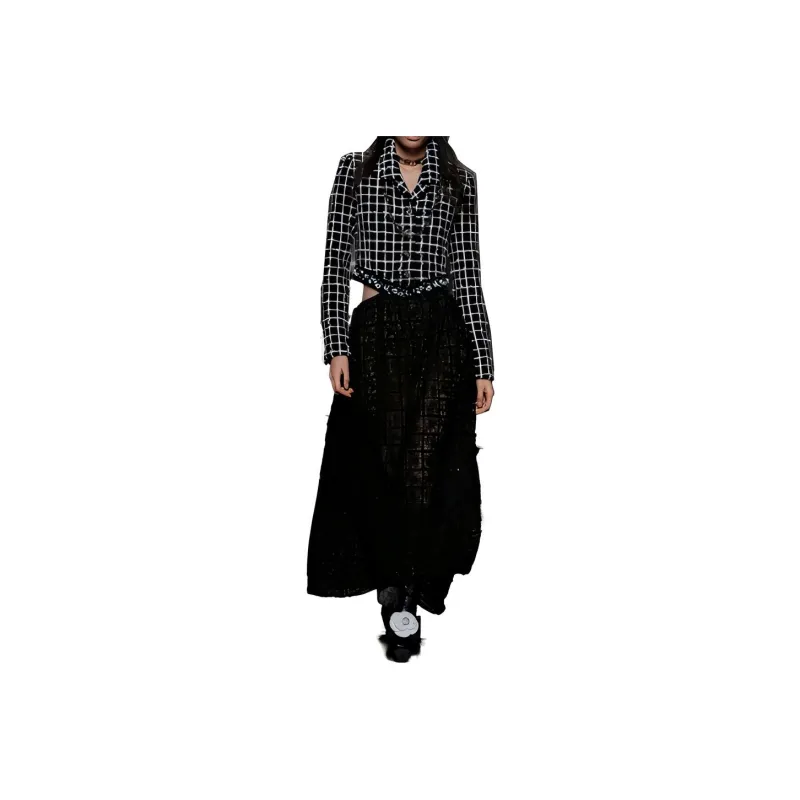 CHANEL Черное/Белое Женское Длинное Платье с Рукавами