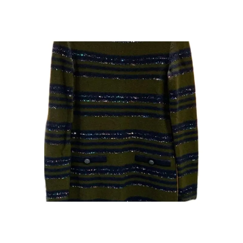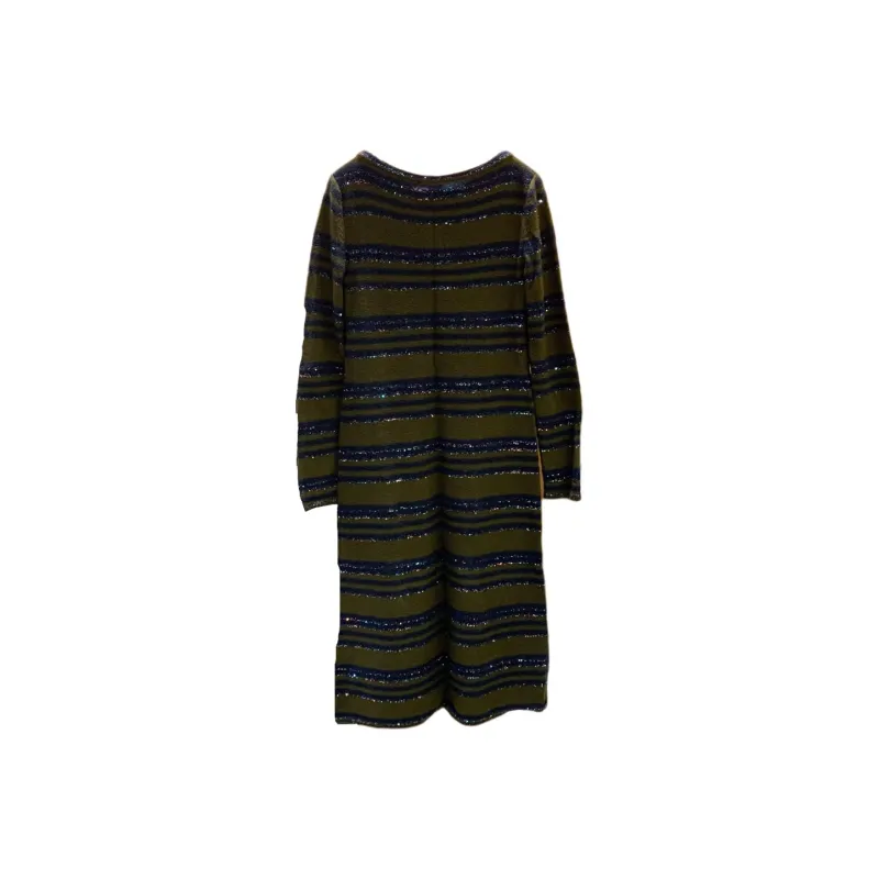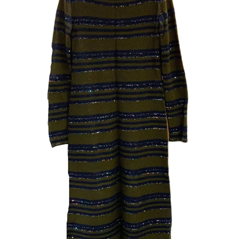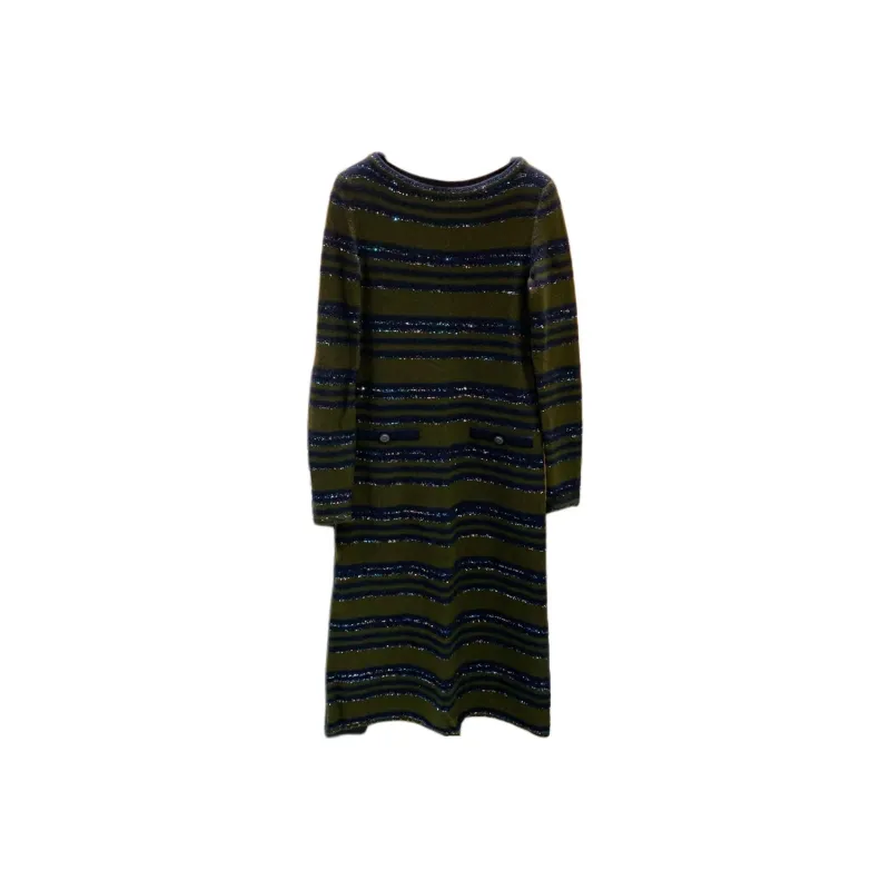 CHANEL Длинное платье с длинными рукавами женское темно-зеленое