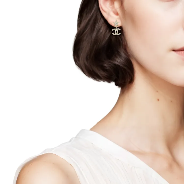 CHANEL Металл Кристалл Полудрагоценный Камень Серьги Женские Золото