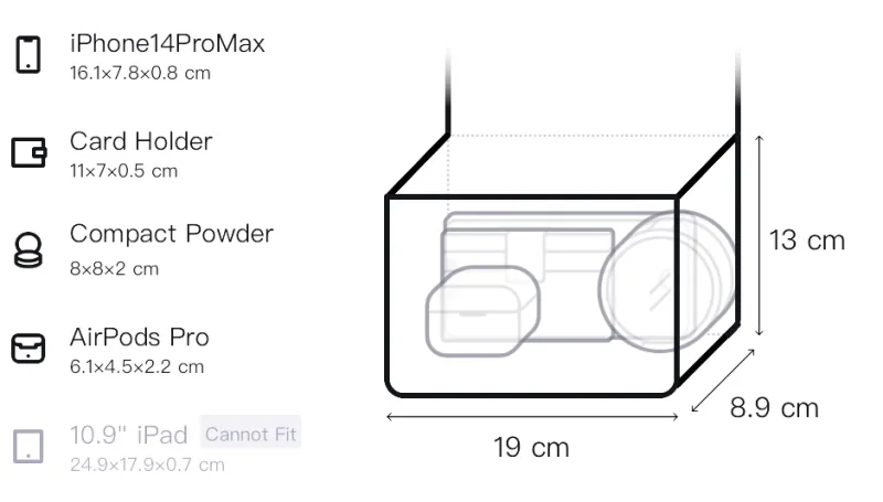 Длина 19 см * Ширина 8,9 см * Высота 13 см