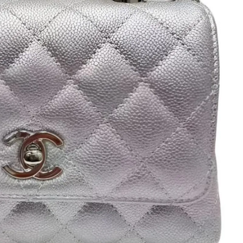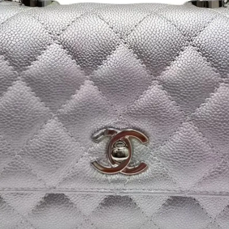 CHANEL Металл с рельефом Телячья кожа Сумка Женская Серебряная