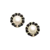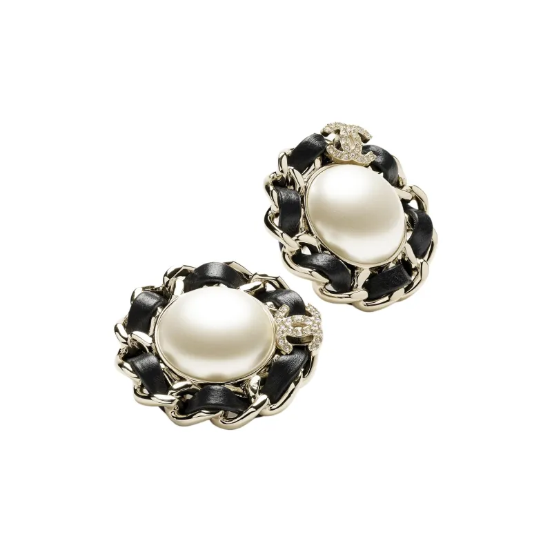 CHANEL Серьги-гвоздики из металла Женские Золото Черный Жемчужный Белый Кристалл