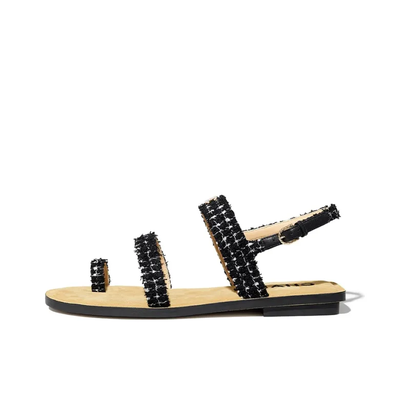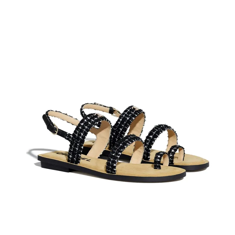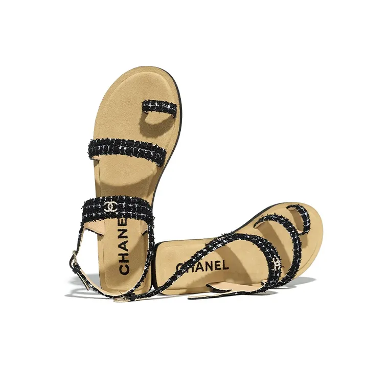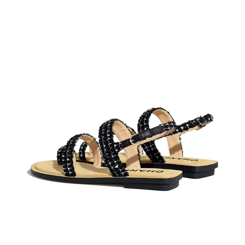 CHANEL One Ремешок Сандалии Женские Черный Белый