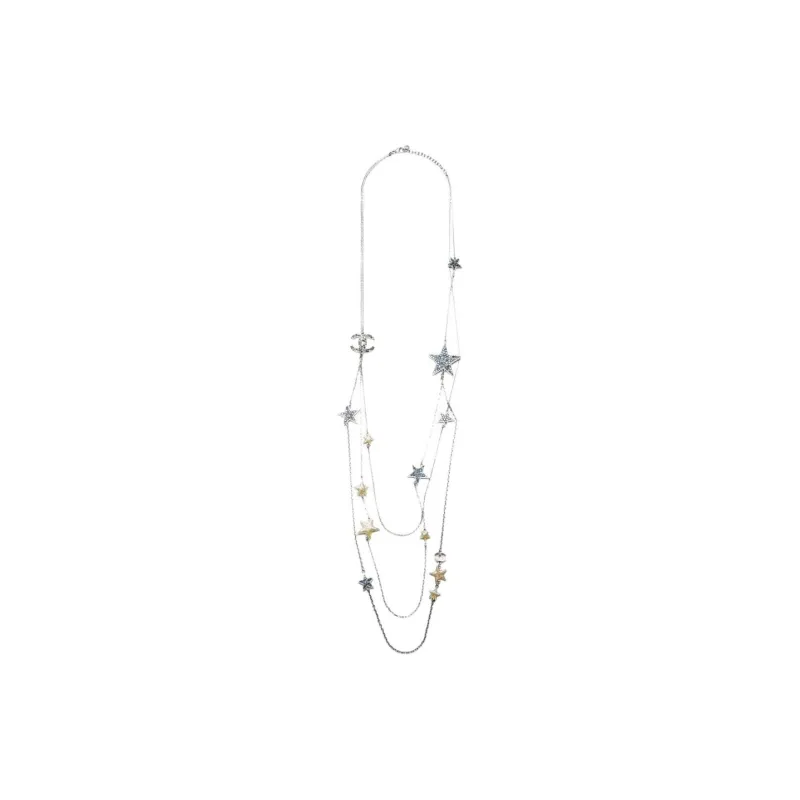 CHANEL CC Rhinestone Серебряное покрытие Ожерелье Women's Silver