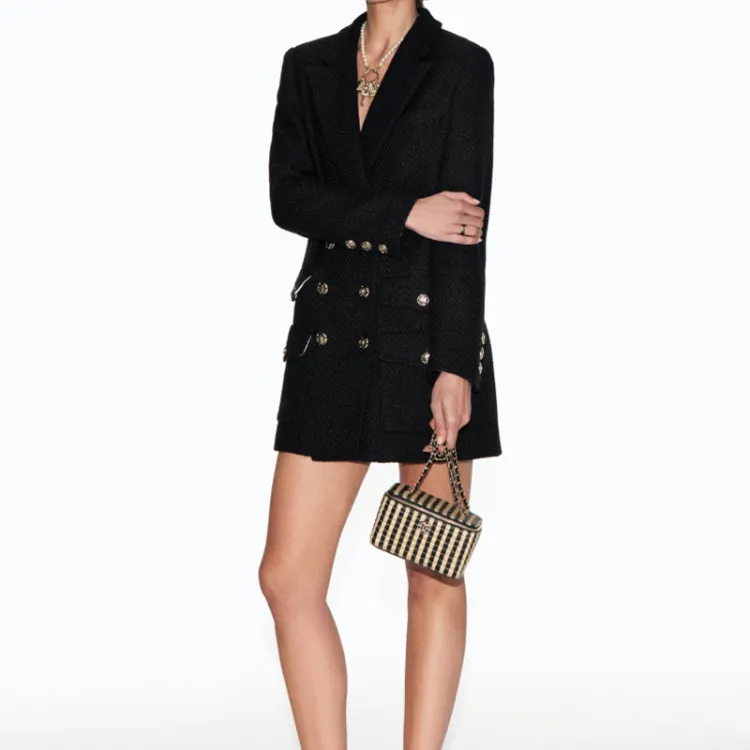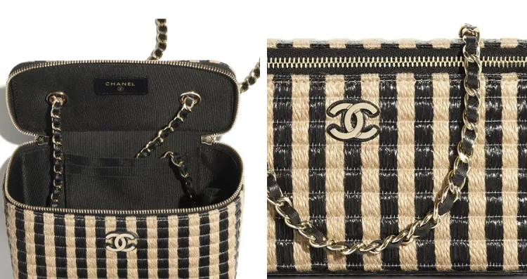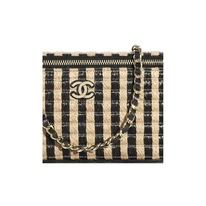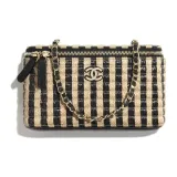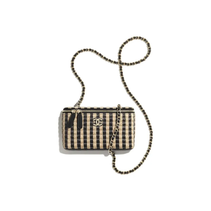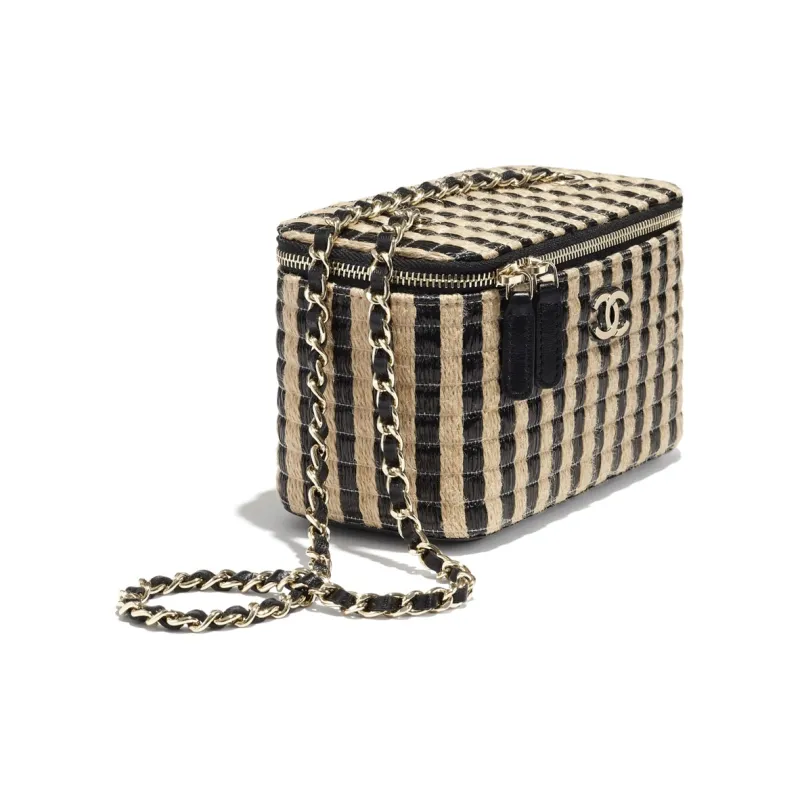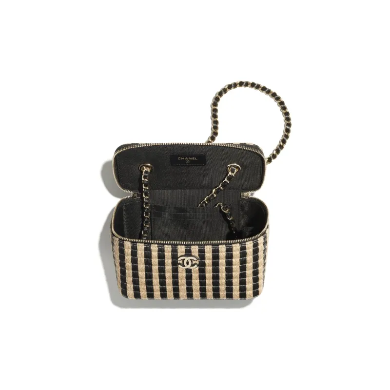 CHANEL Рафия Fiber Hemp Thread Metal Сумка для макияжа косметичка Женская Черная Бежевая