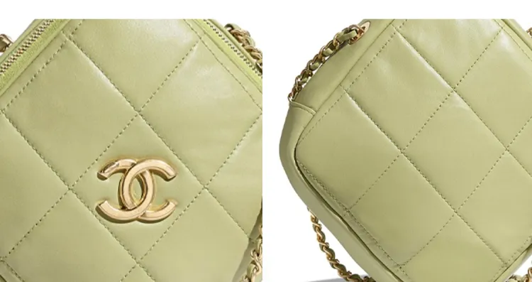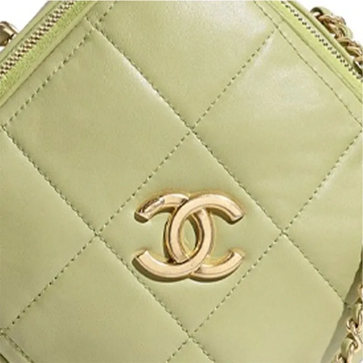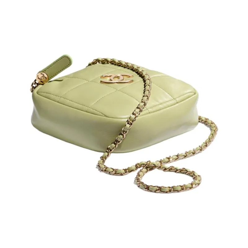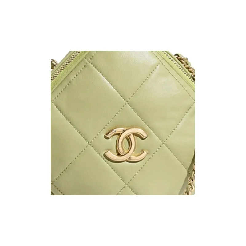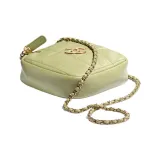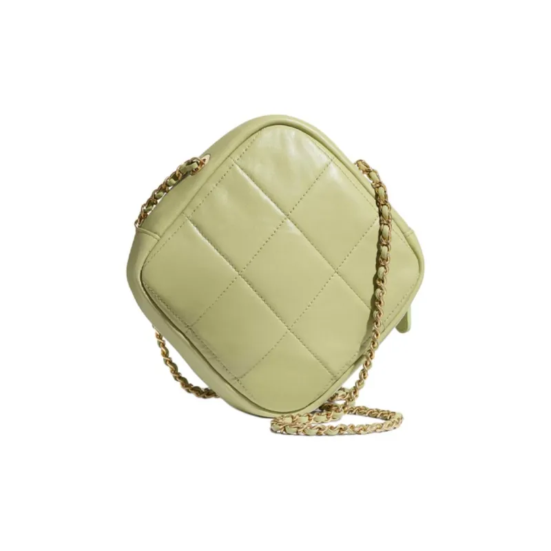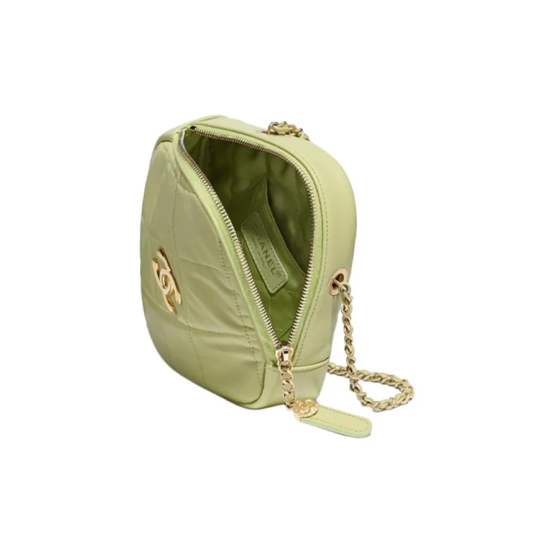 CHANEL Sheepskin Diamond Wallet Card Holder Shoulder Bag Women's Grass Green