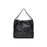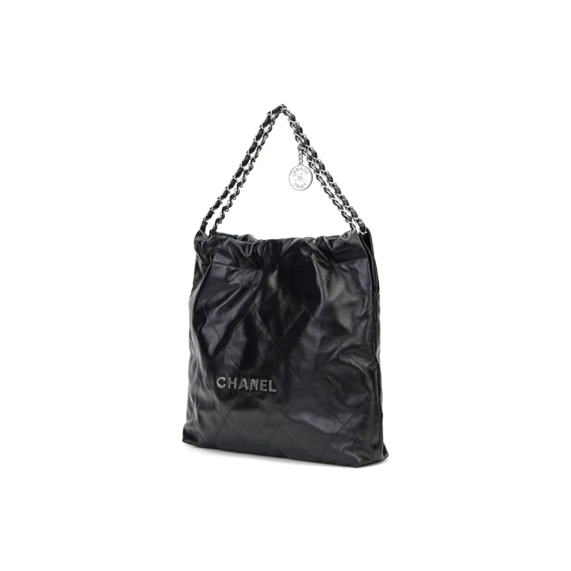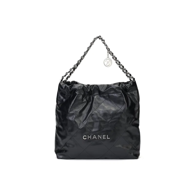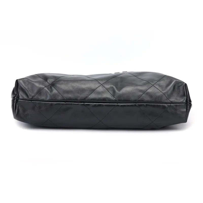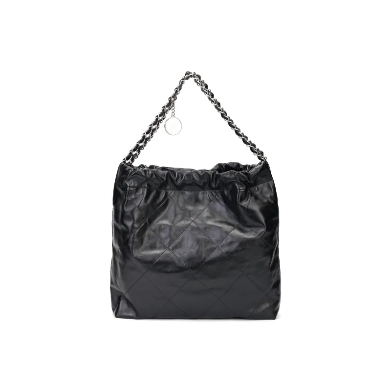 CHANEL Блестящая Телячья Кожа Хобо Сумка Сумка через плечо Сумка на плечо Женская Черная