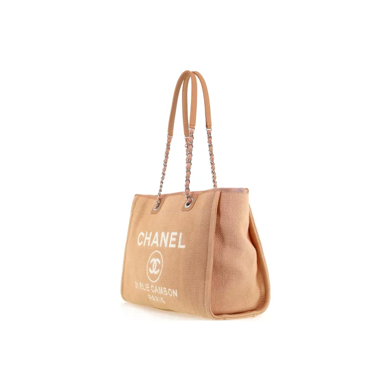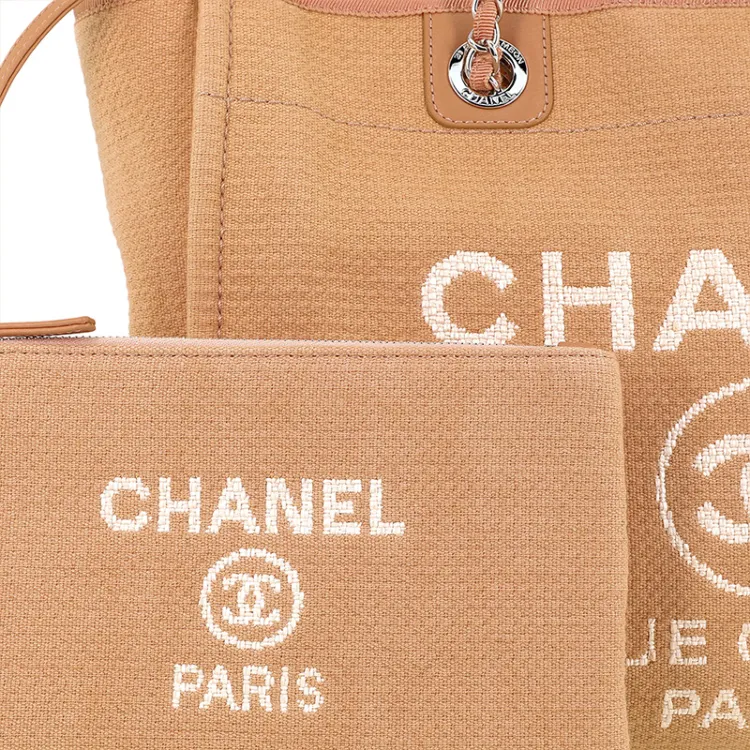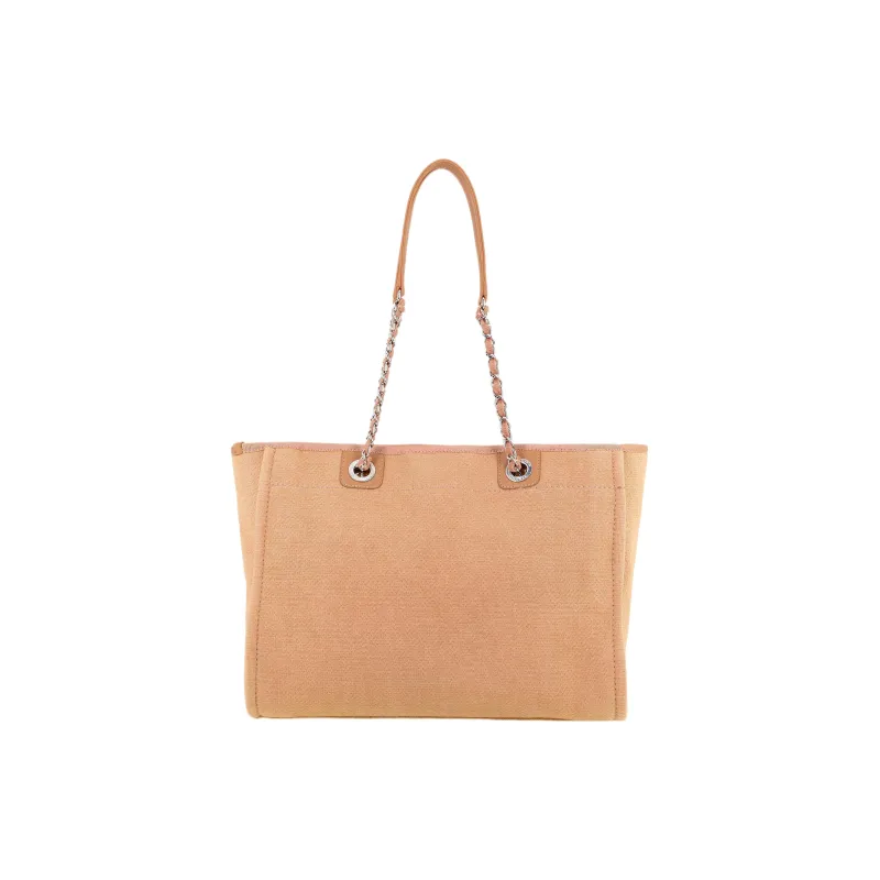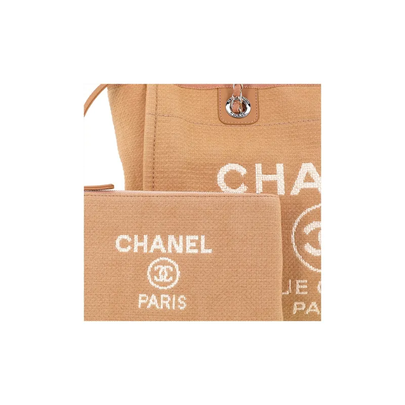CHANEL Хлопок с холстом и кожа BEACH BAG Тоут сумка Сумка для покупок Холщовая сумка Сумка на одно плечо Женская