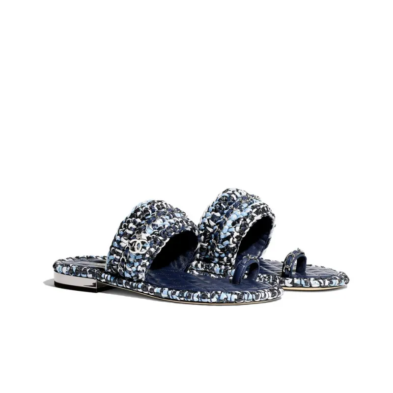 CHANEL Слипоны Женские Синий Черный