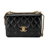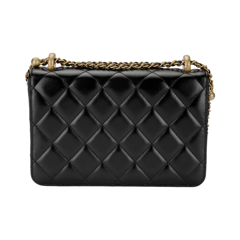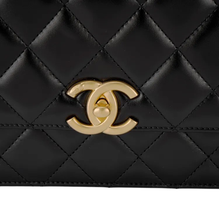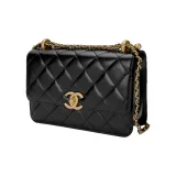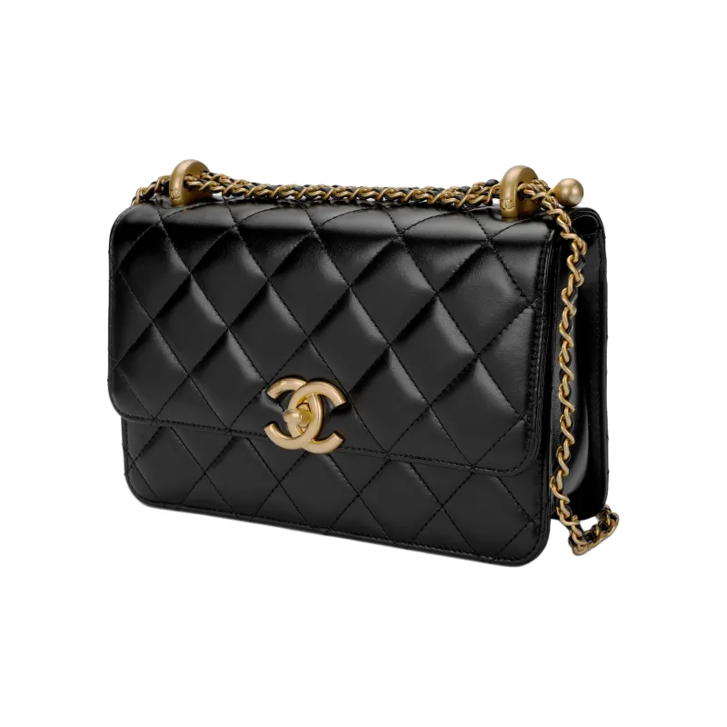 CHANEL Телячья кожа и металл Сумка через плечо Маленькая Женская Черная