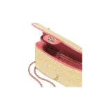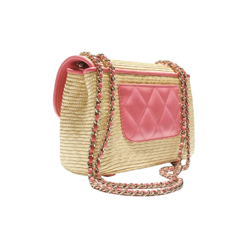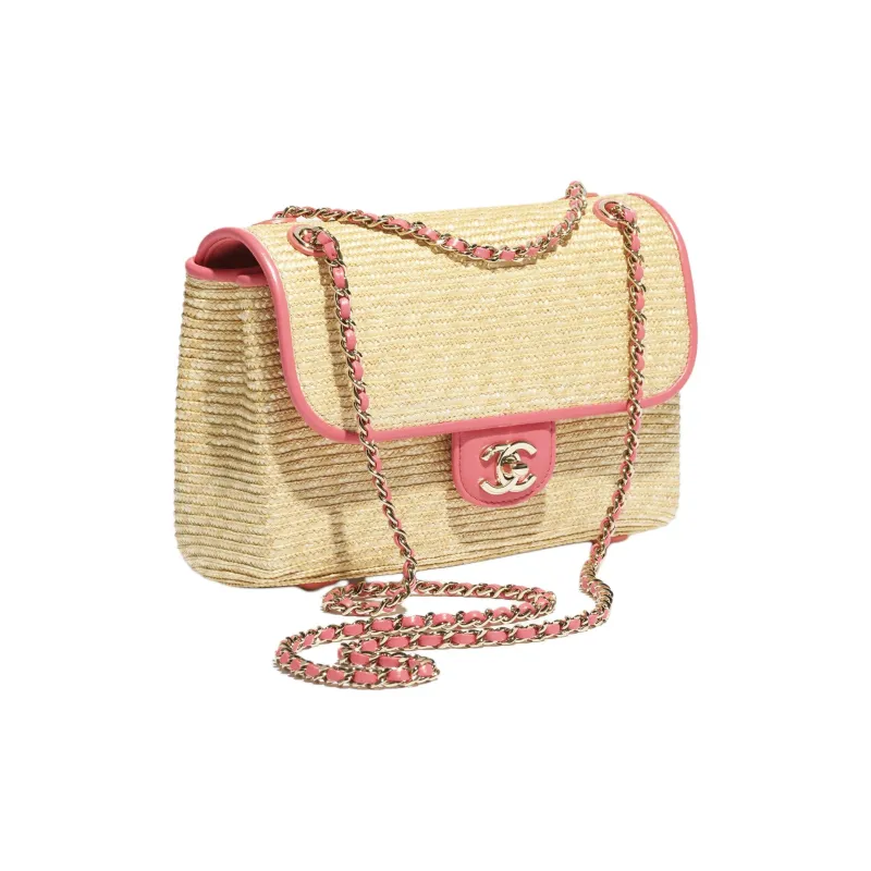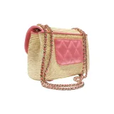 Chanel Ткань из соломы с овечьей кожей сумка через плечо маленькая женская бежевая и коралловая