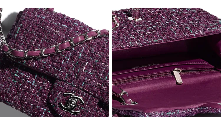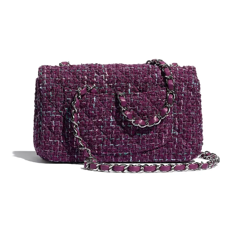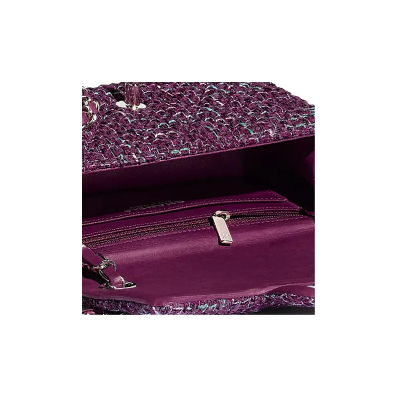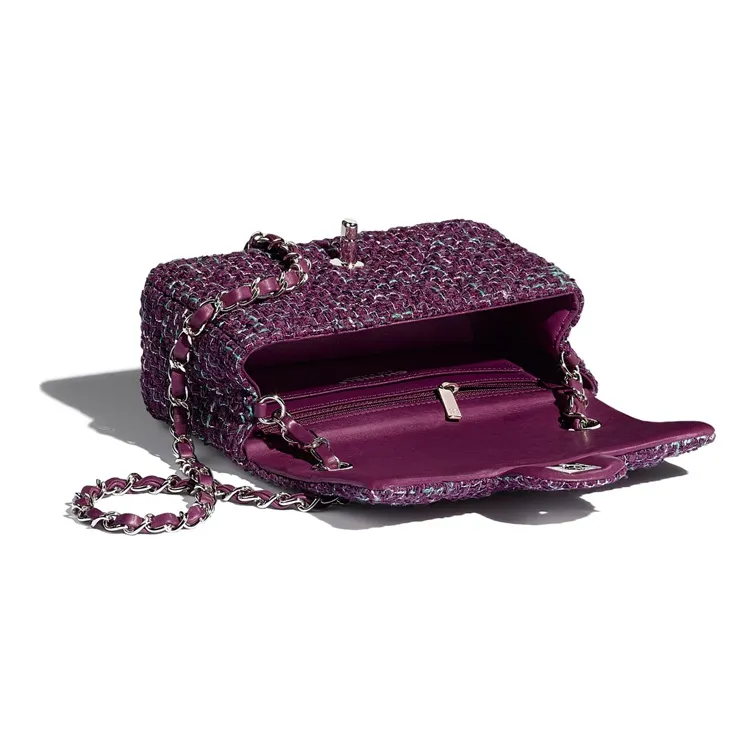 CHANEL Twill Soft Nappa Metal Flap Bag Crossbody Shoulder Bag Mini Women's Purple Silver