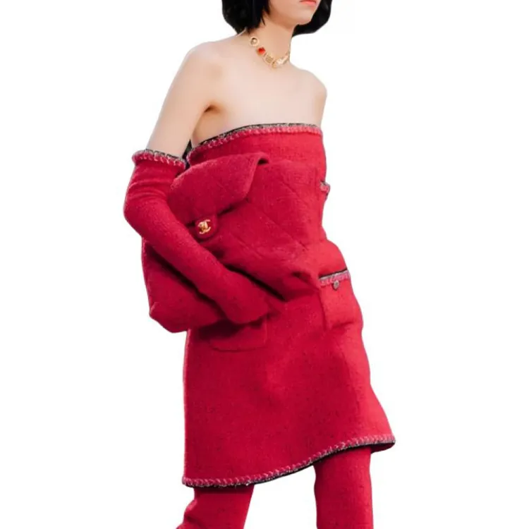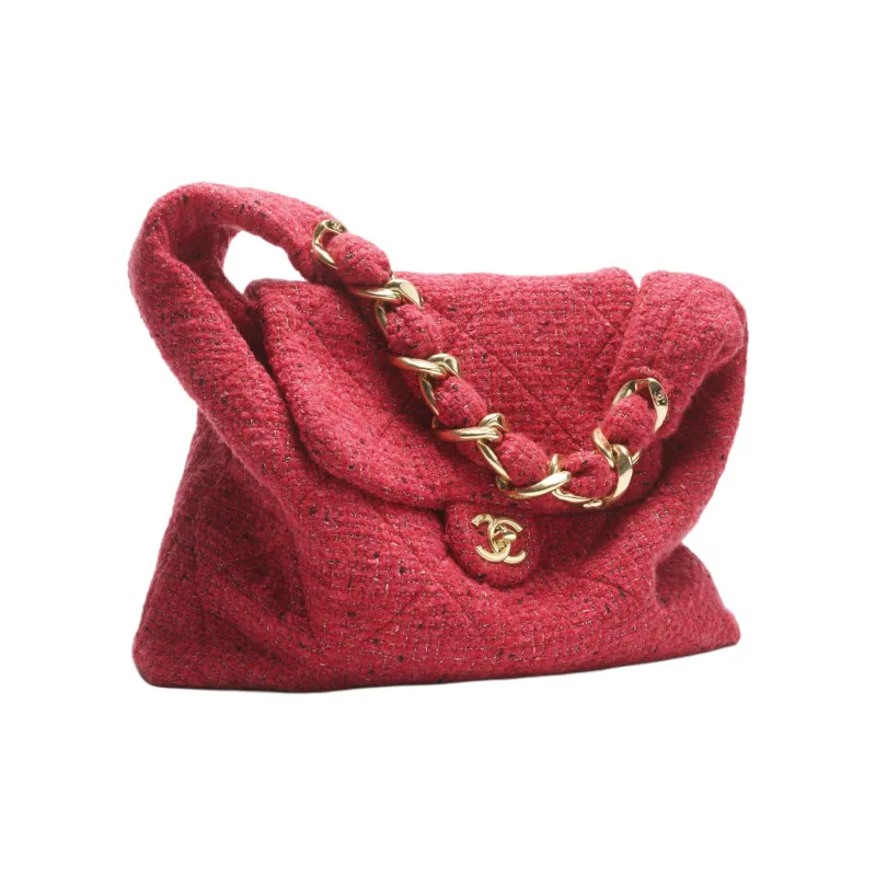 CHANEL Twill Мягкая Шерстяная Сумка-хобо Сумка Extra Large Женская Красная