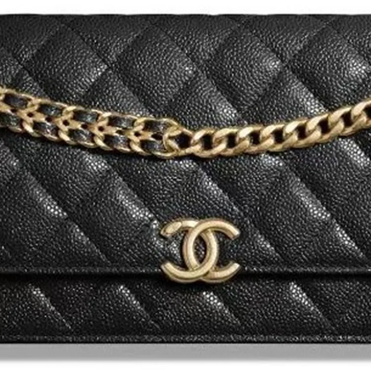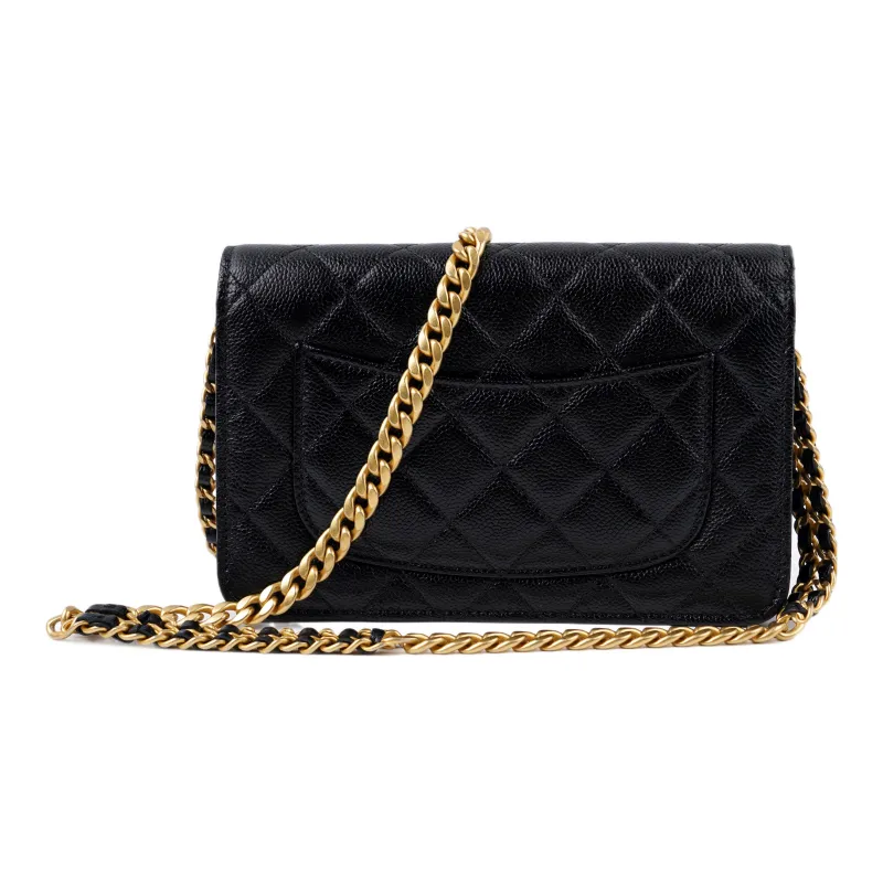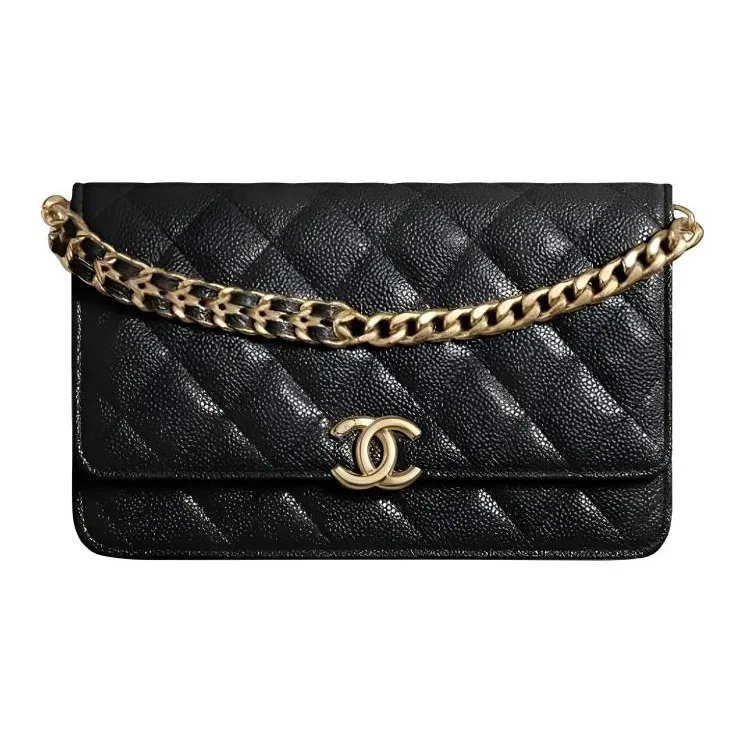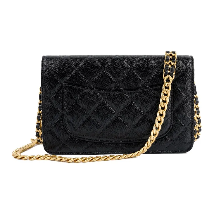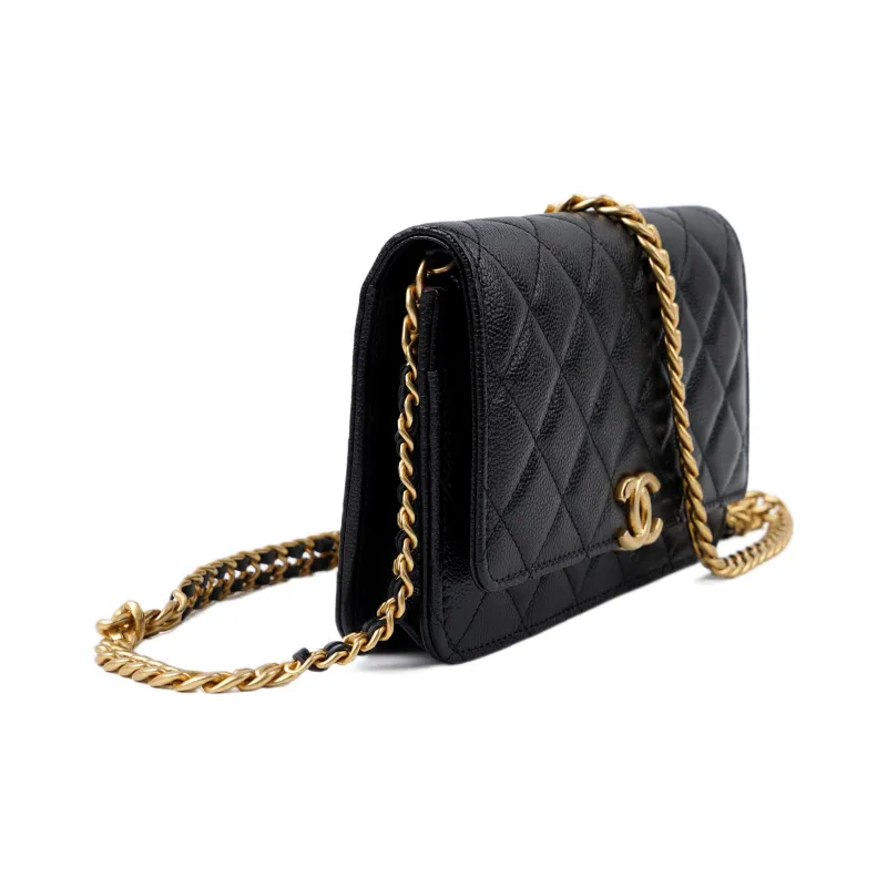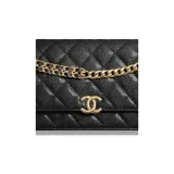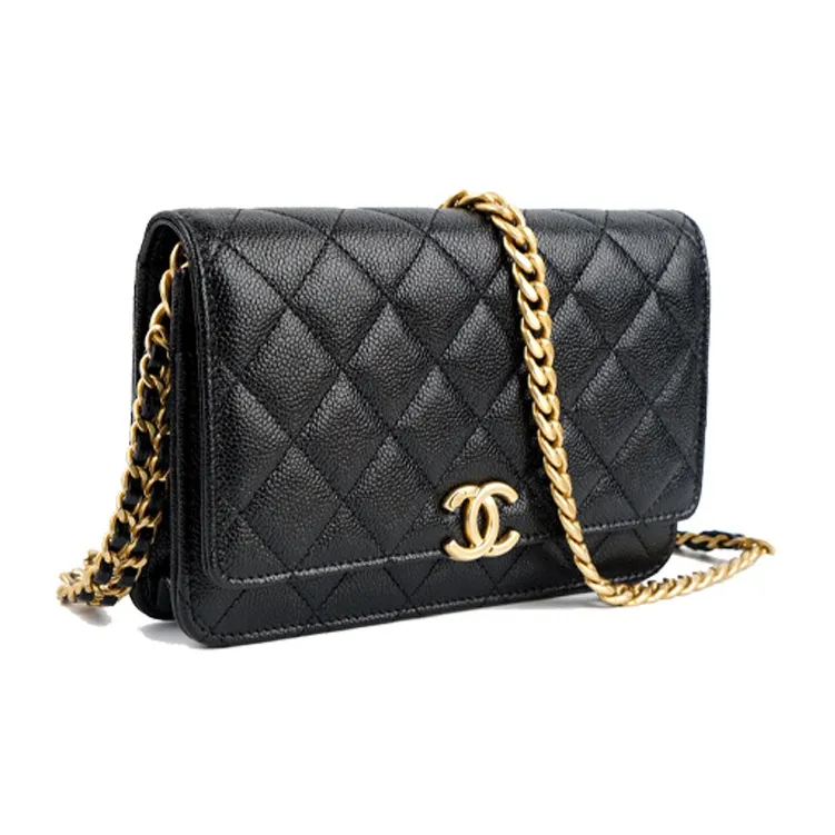 CHANEL WOC С рельефом Тисненый Блестящий Икорный Телячья кожа Ручной Сумка через плечо Бананка Женские Черный