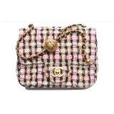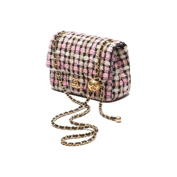 CHANEL Шерсть Twill Мягкая Шерстяная Сумка с клапаном Сумка через плечо Мини Женская Розовая