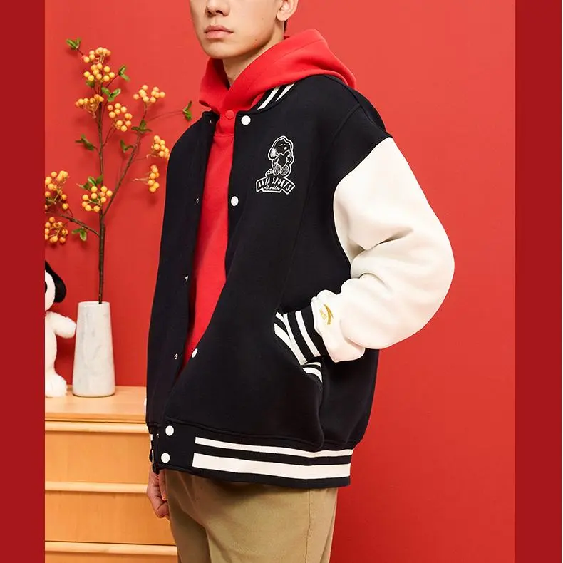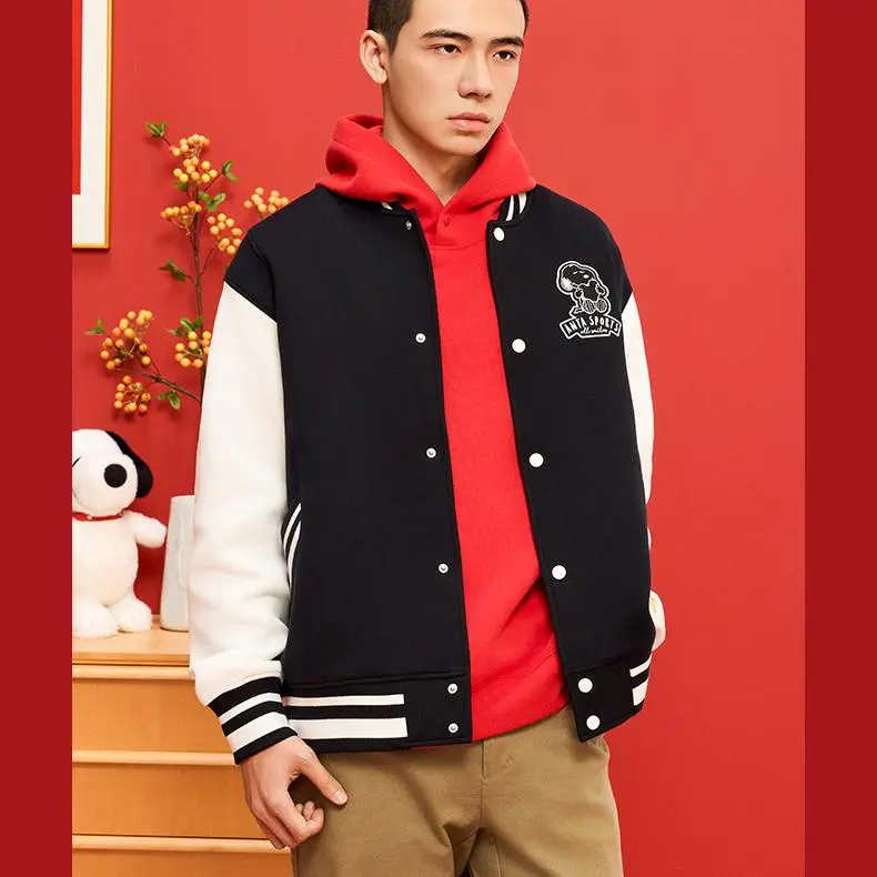 CHAOJIANTA X SNOOPY Бейсбольная куртка Унисекс Основной черный Слоновая кость