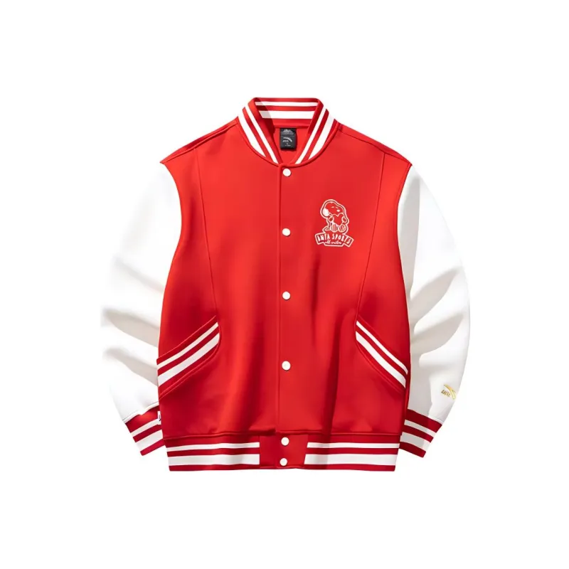 CHAOJIANTA X SNOOPY Бейсбольная куртка Унисекс Классический красный Слоновая кость