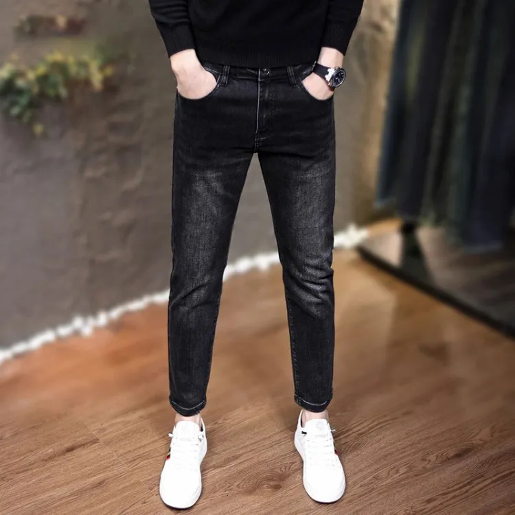 CHAOZHANGGUI Черный Серый Джинсы на щиколотку (Размер Длина) Мужские