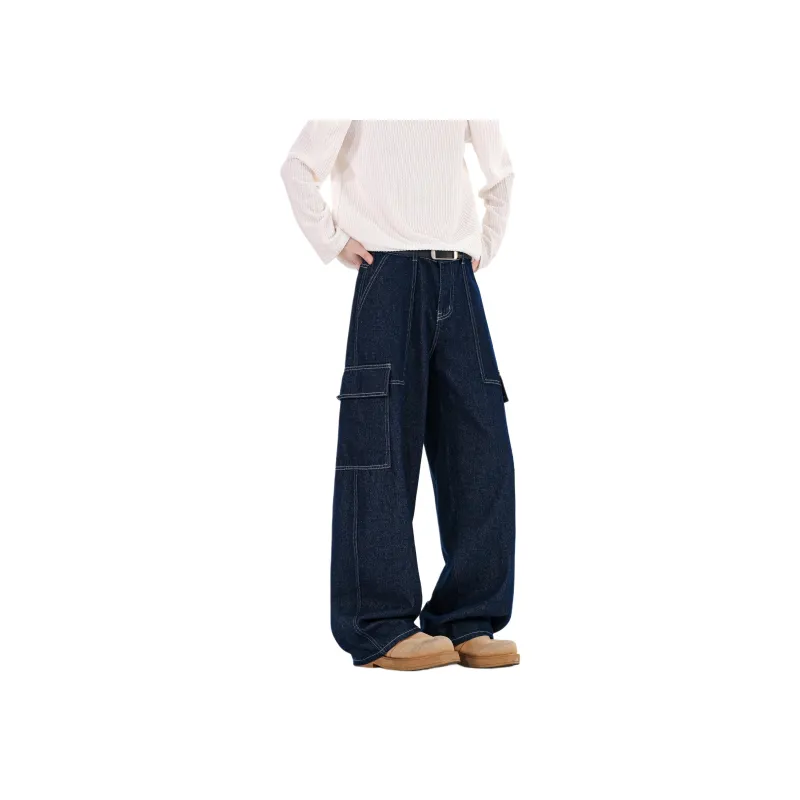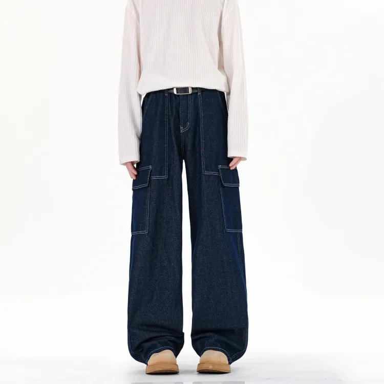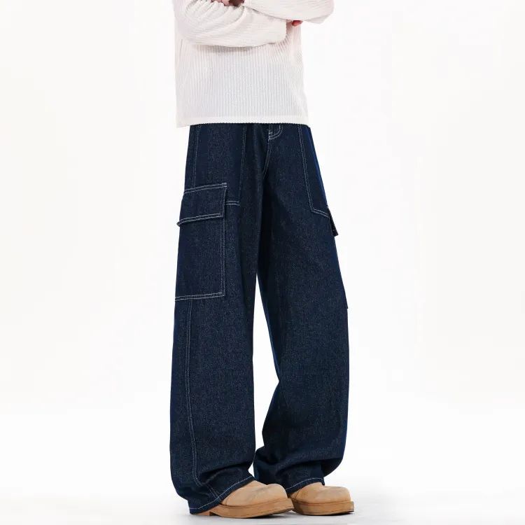 CHAOZHANGGUI Темно-синий синий мужской джинсы