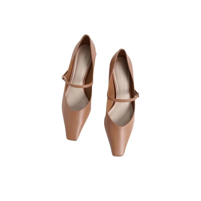 CHARLES KEITH Квадратный каблук Mary Jane обувь 4CM Женская Карамель