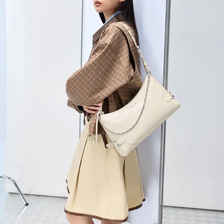 CHARLES KEITH ПУ (полиуретан) Сумка на плечо Locomotive Package Большая Женская Черная Кремовая Молочно-белая