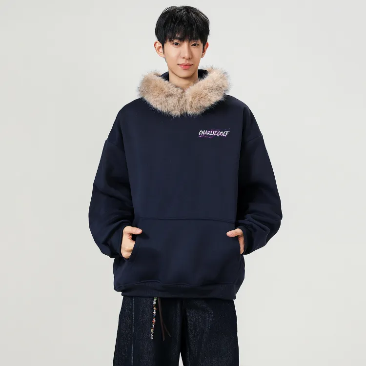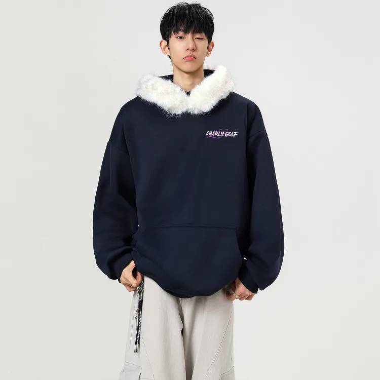 Темно-синий с белым мехом