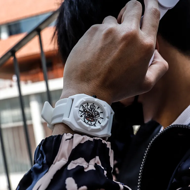 CHARLOTTE RAFFAELLI· Кибер Меха Коллаборация Наручные часы Кварцевый механизм Силиконовый ремешок Черепный циферблат Унисекс Коробка