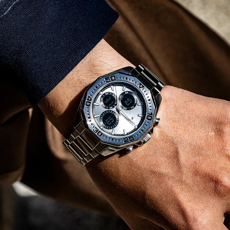 CHARLOTTE RAFFAELLI Мужские часы с кварцевым механизмом Quartz Edge Trend Series, 42,5 мм*42,5 мм*15 мм, серебряные