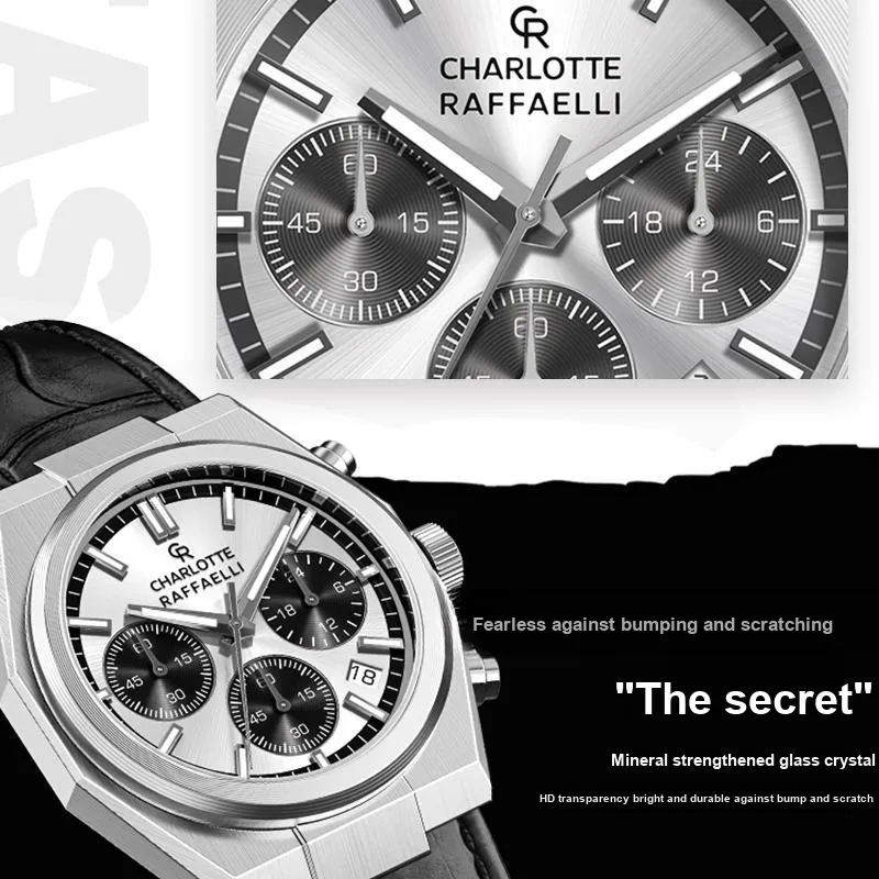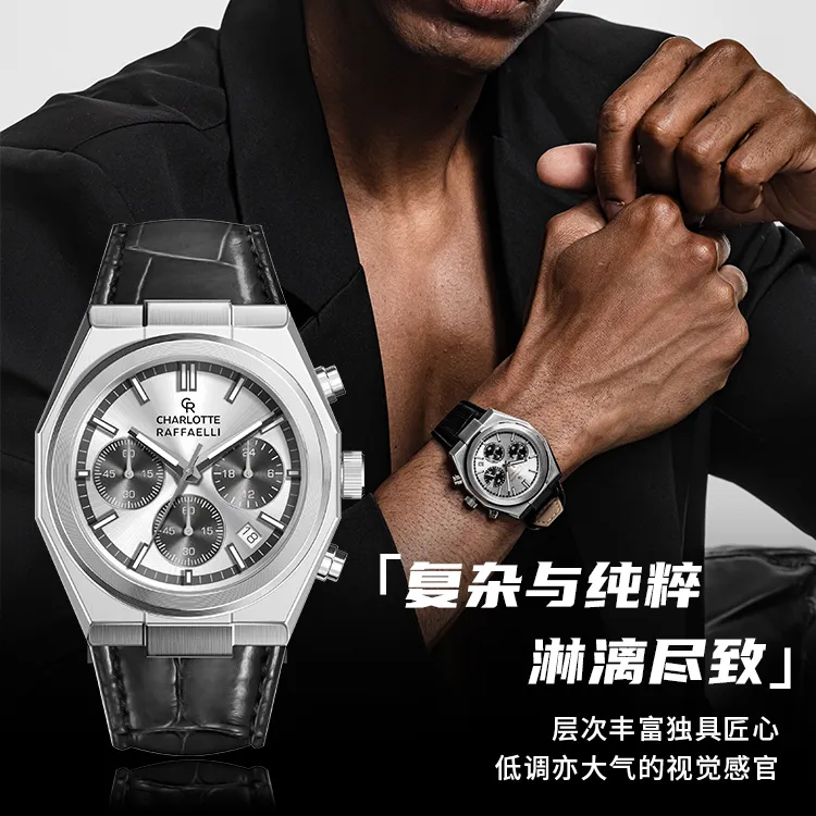 CHARLOTTE RAFFAELLI Мужские часы с кварцевым механизмом Quartz Edge Trend Series, 40 мм*40 мм*11,3 мм, серебряные