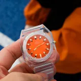 Прозрачный циферблат часов, оранжевый