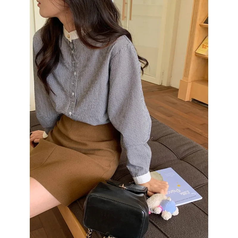 CHARM PICK Черная клетка Женские рубашки