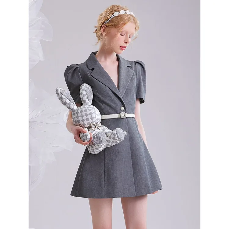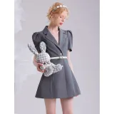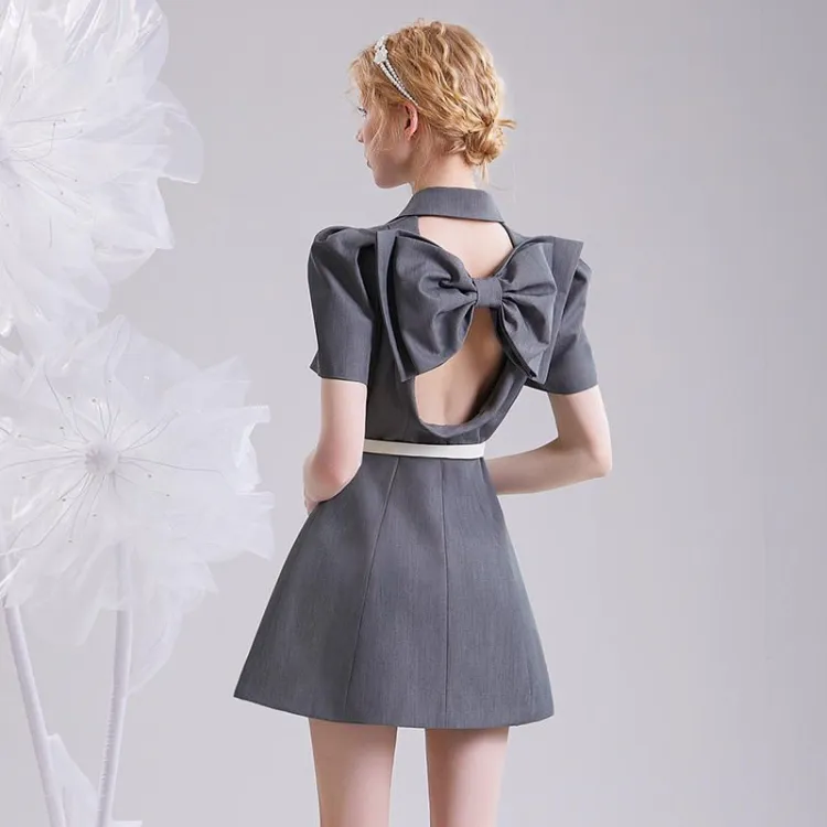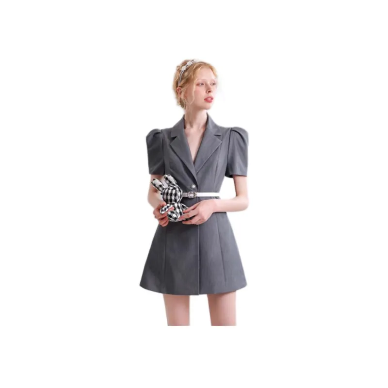 CHECOCRE Серый Женские Короткие Платья с Рукавами