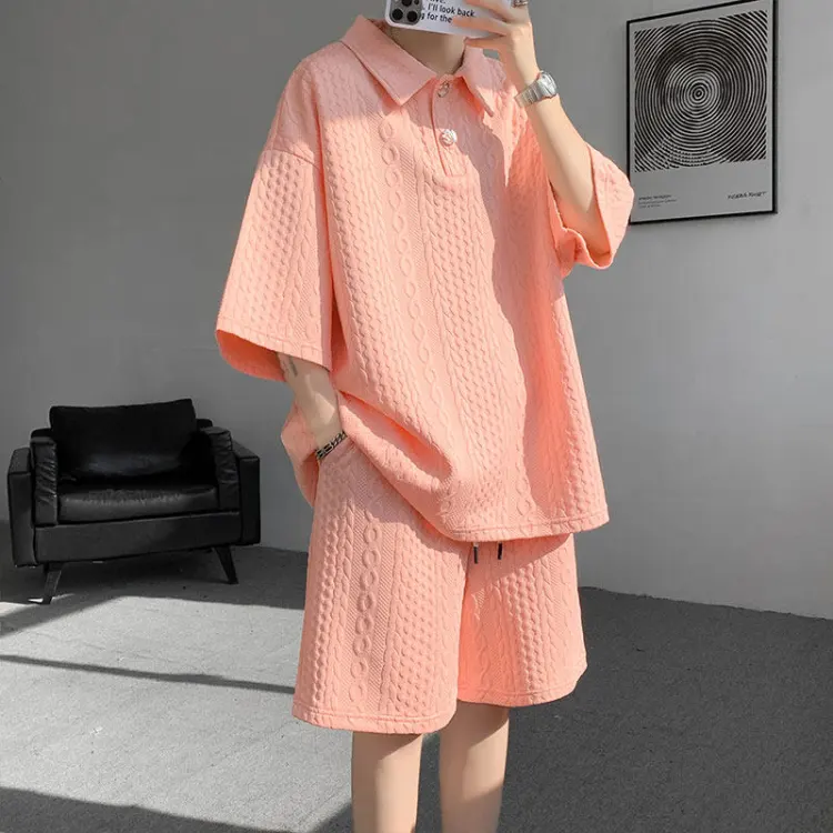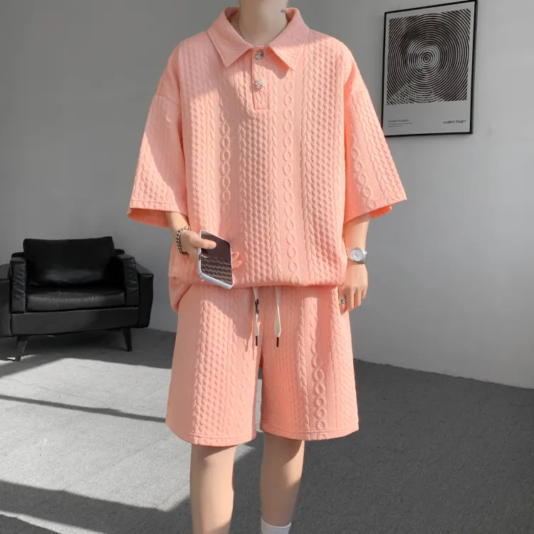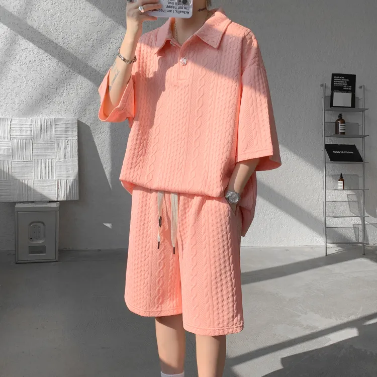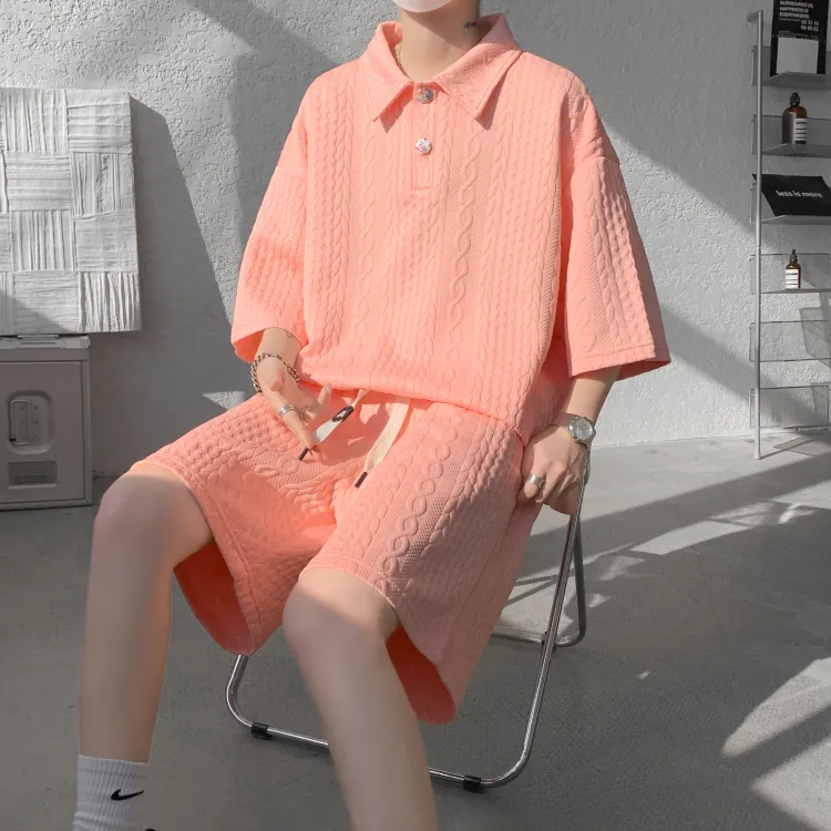 Комплект одежды (Оранжевая розовая рубашка с коротким рукавом + оранжевые розовые шорты)