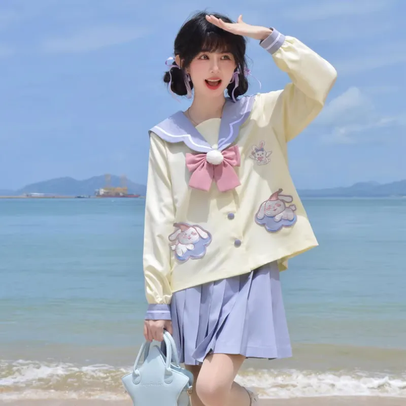 (Юнюнь Кролик) Длинный рукав + Юбка + Галстук-бабочка