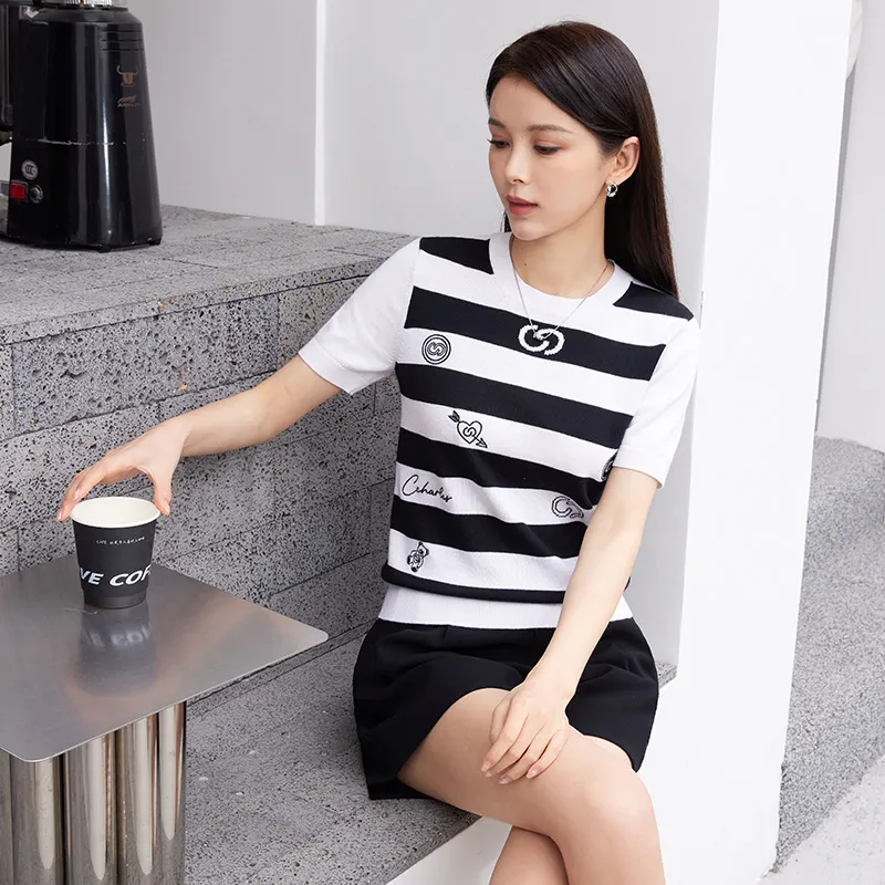 Chester Charles Трикотаж Женский Черный Белый Полосы