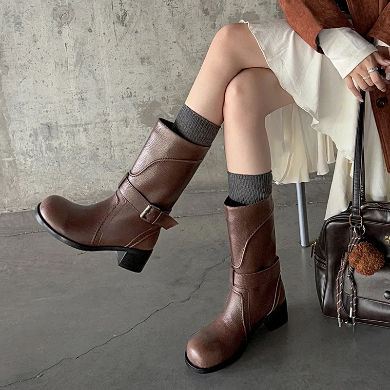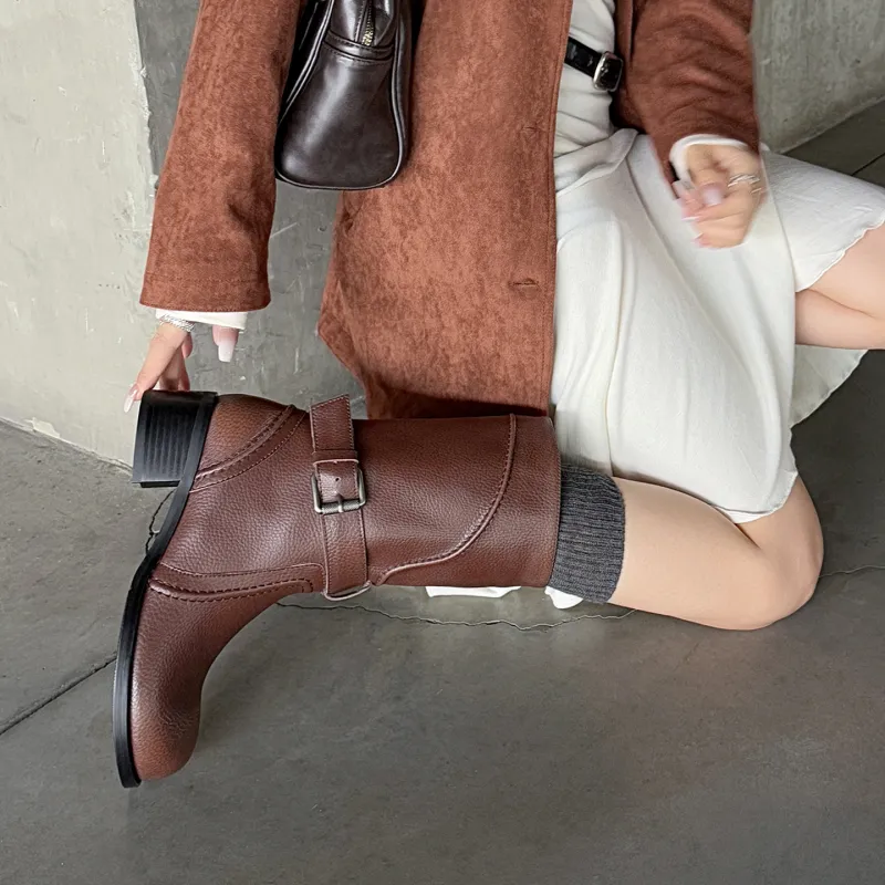 CHEYI Ремни с застежками ботильоны 5 см женские полированные ботинки на голень MID