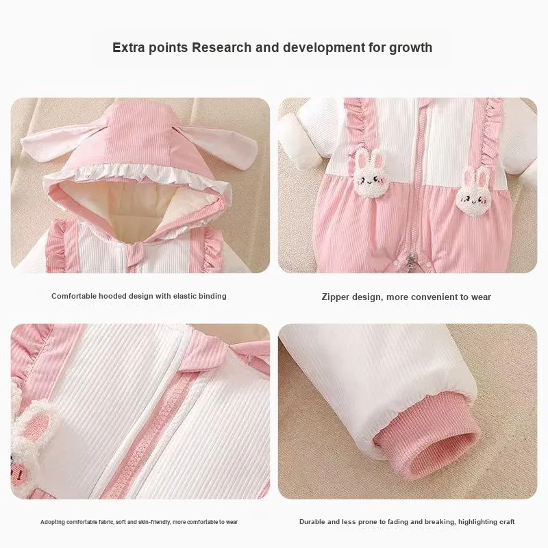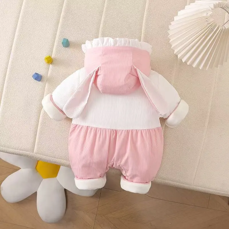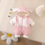 Цвет:Розовый-A-2 шт Кролик Кружевная отделка Толстый хлопок Толстовка