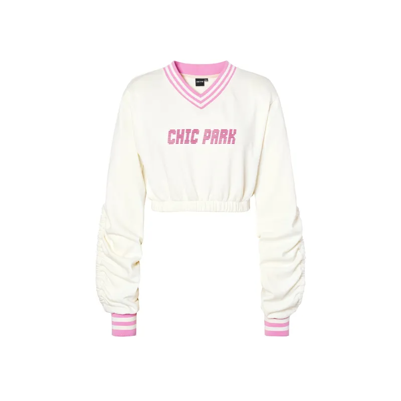 Chic Type V-Neck Свитшот Весенний Осенний Женский Бежевый
