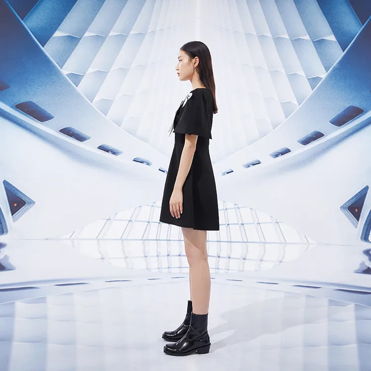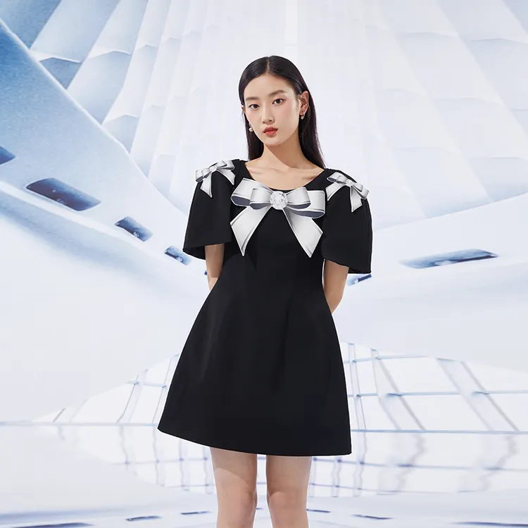 ITIB CHICTOPIA Черное Женское Короткое Платье с Рукавами