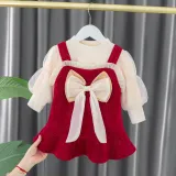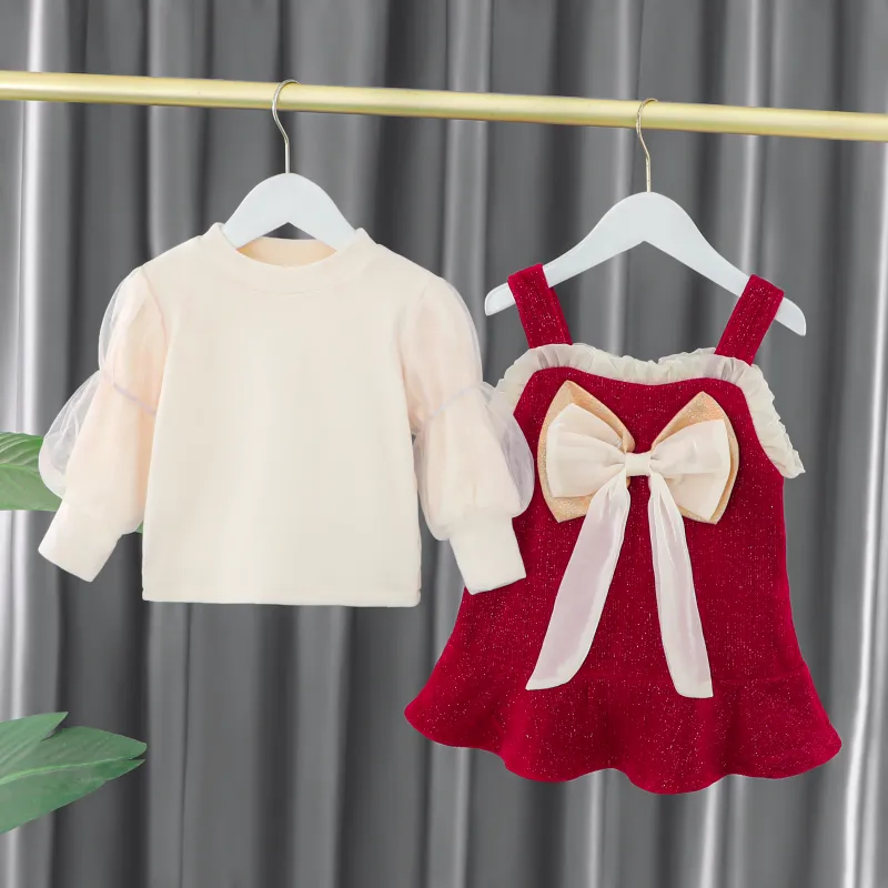 Цвет:Комплект одежды (Экрю базовый слой + красная длинная юбка)