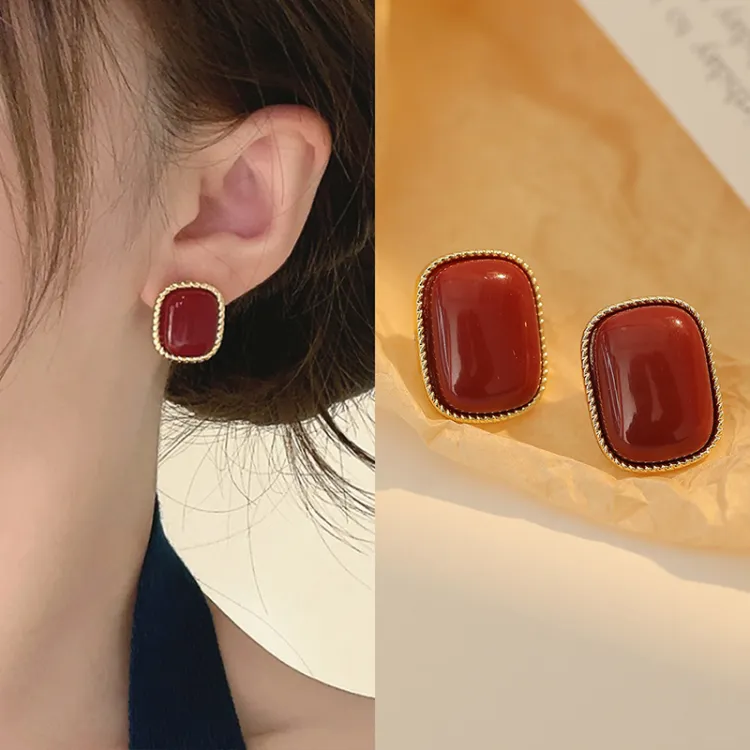 Комплект из 5 сережек-гвоздиков с разными цветами в подарочной коробке ручной работы