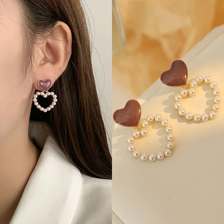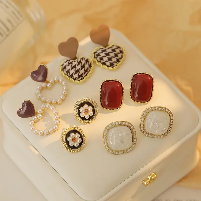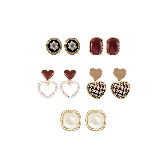 Комплект из 5 сережек-гвоздиков с смешанными цветами, в форме сердца, в подарочной коробке