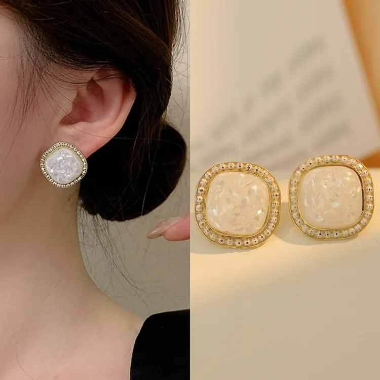 Комплект из 5 сережек-гвоздиков, смешанного цвета, белый, подарочная коробка