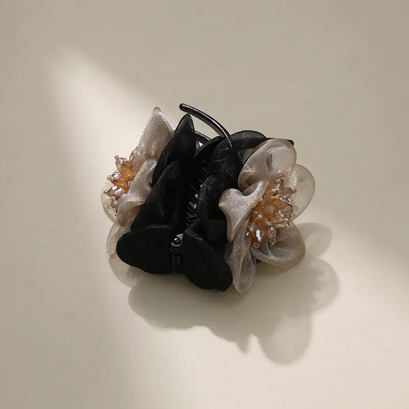 Шампанское Черный Шелковый Шифон Цветочный Заколка для волос