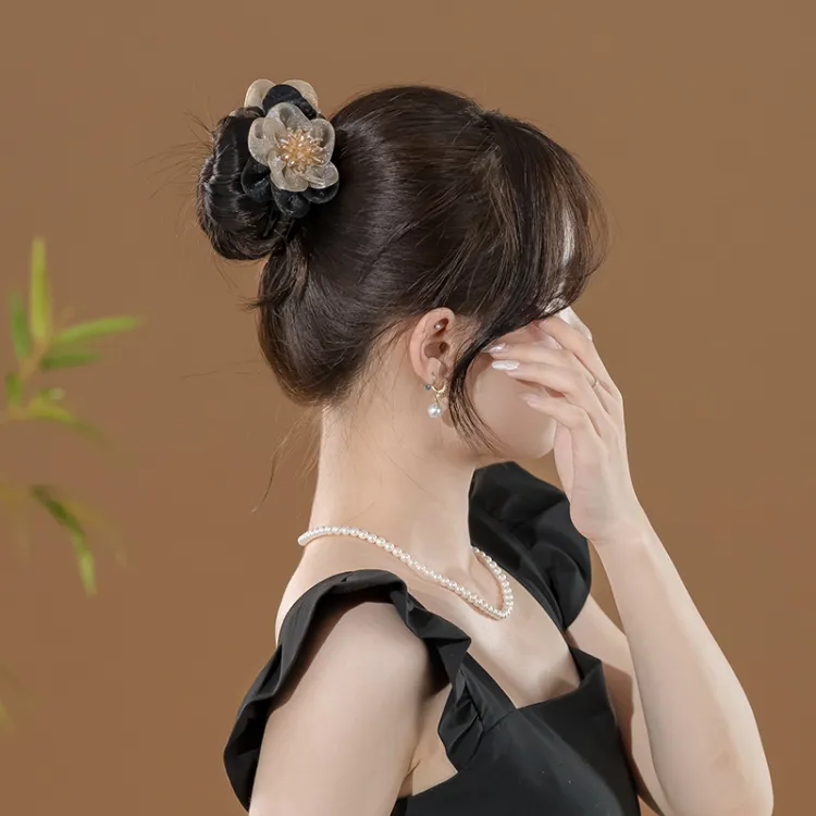 Стиль:Шампанское Черный Шелковый Шифон Цветочный Заколка для волос