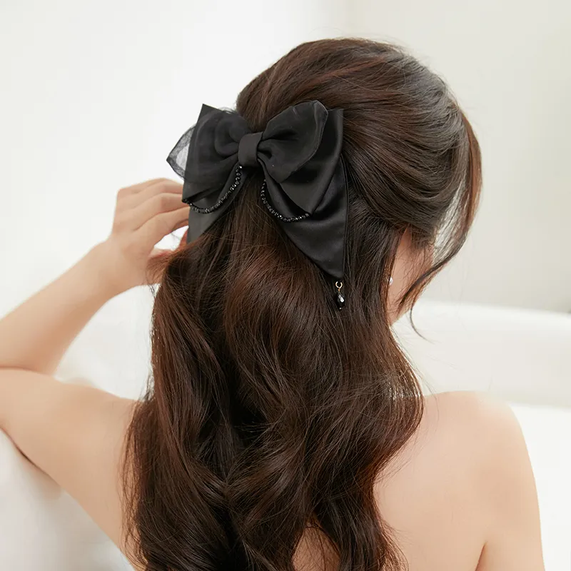 Стиль:Черный, прозрачный, стразы, бант, заколка для волос