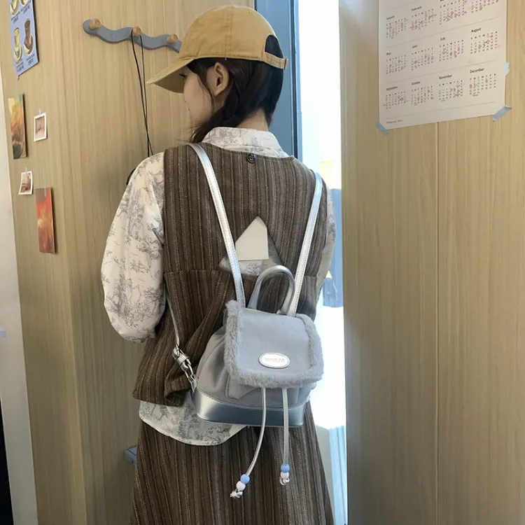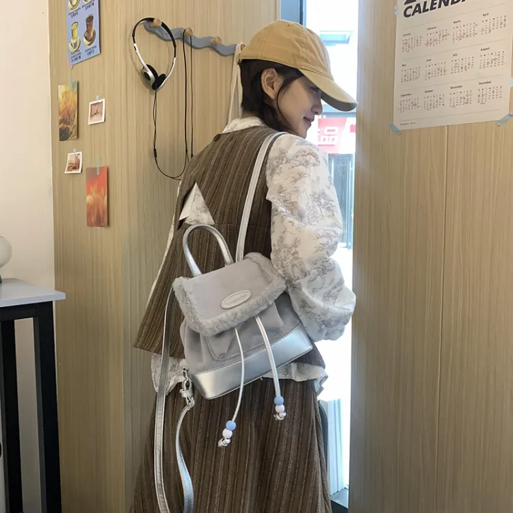CHINLLO Велюр Рюкзак Стандартный Серебристый Черный Розовый Кофейный Коричневый